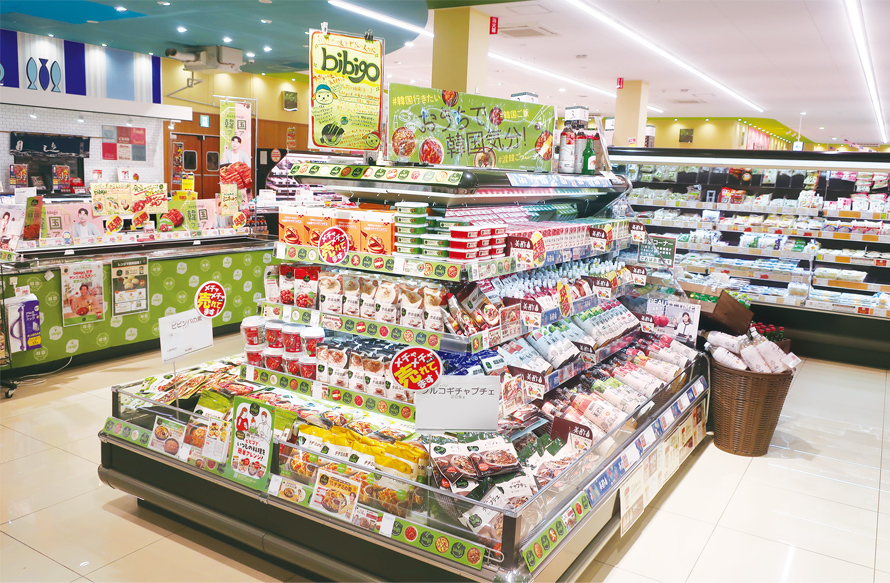 「品揃えを幅広く、というだけでは大手チェーンとの差別化は難しいので、お客さまから見て、当店に来店したいと思われるような独自性のある品揃えを考えています。今回のコンテストについても、これをきっかけとして、「bibigo」ブランドに絞り込み、冷凍の平台と、その向かいのチルド定番コーナー、常温売場などを連携させて、全体として大規模で訴求力のある常設売場を展開することにしました」という。