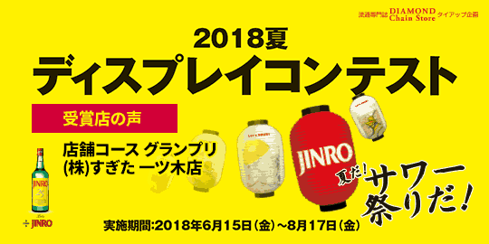 今回の売場は、リピーターが多いJINROとしてのアピールと、新規顧客開拓へのアプローチという両面からトライをしたことで、通常と比べて150%以上の売上を達成したという。コンテストの効果を再認識することができる結果となった。