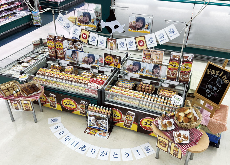 グロサリー売場チーフの笹森愛子氏は「ほとんどのお客さまが子供の頃から愛飲している雪印コーヒーなので、売場の反響も大きく、『もう発売から60年も経つんだ』『みんな飲んでいた』などと話しながら購入いただくケースが多くありました」と語ってくれた。